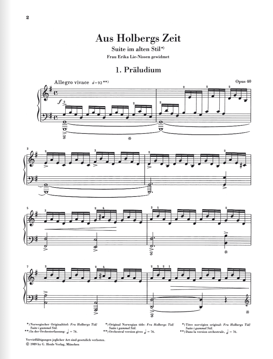 From "Holbergs Zeit", Suite in the old style op. 40