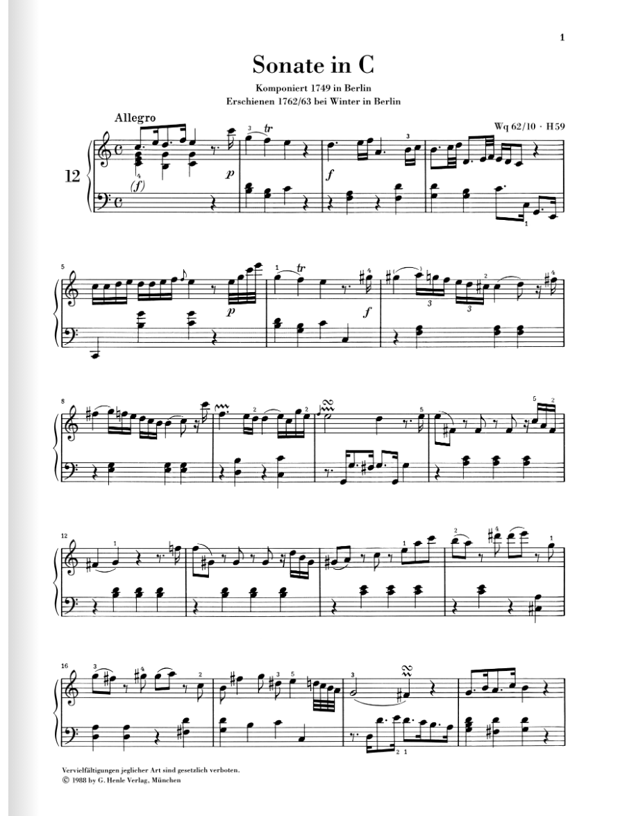 Piano Sonata in C major, Wq 51/1 – Difficulty: 6 (Medium)