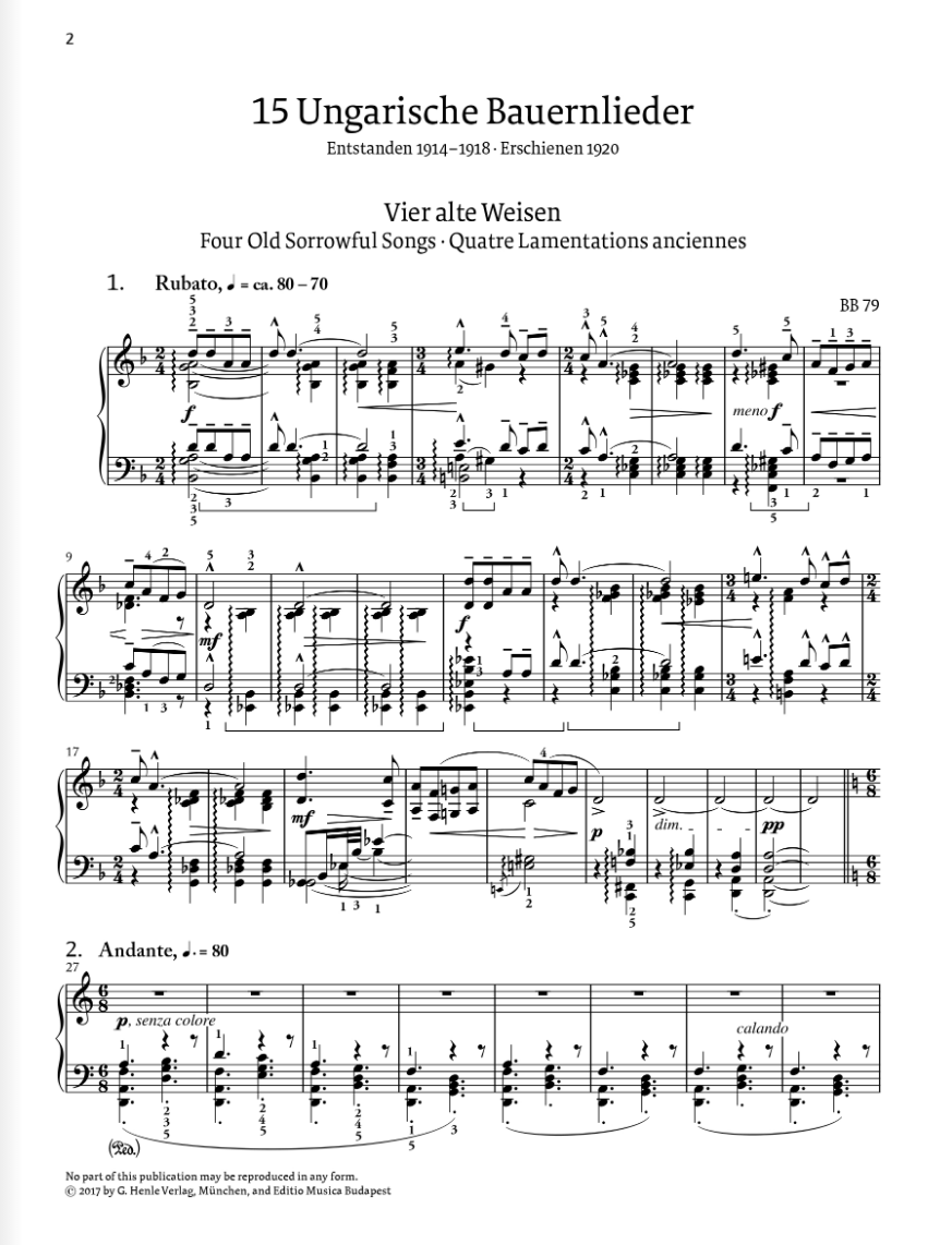 Béla Bartók – 15 Hungarian Peasant Songs BB 79