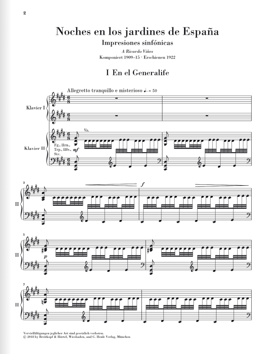 M. de Falla: Nights in the Gardens of Spain for Piano and Orchestra