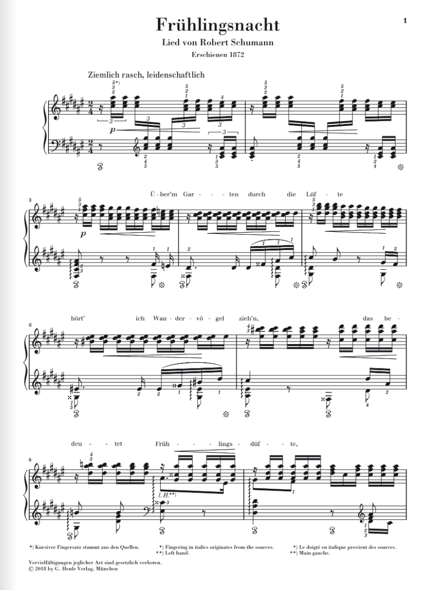 Robert Schumann – Frühlingsnacht (Spring Night) from Liederkreis, Op. 39 – Difficulty: 7 (Difficult)