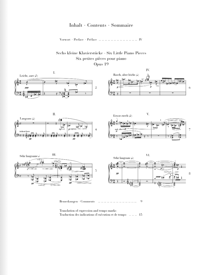 A. Schonberg: Six Little Piano Pieces op. 19