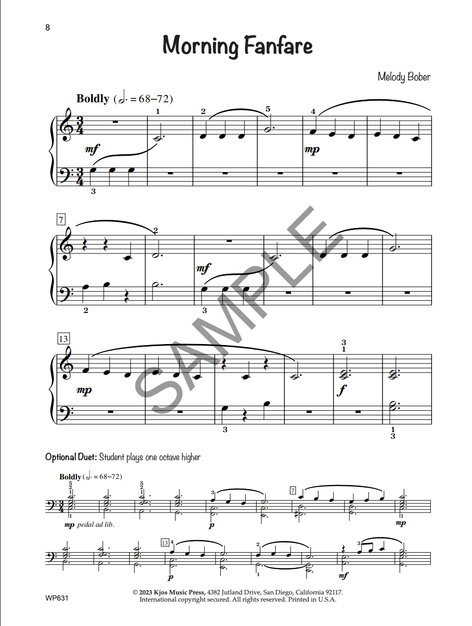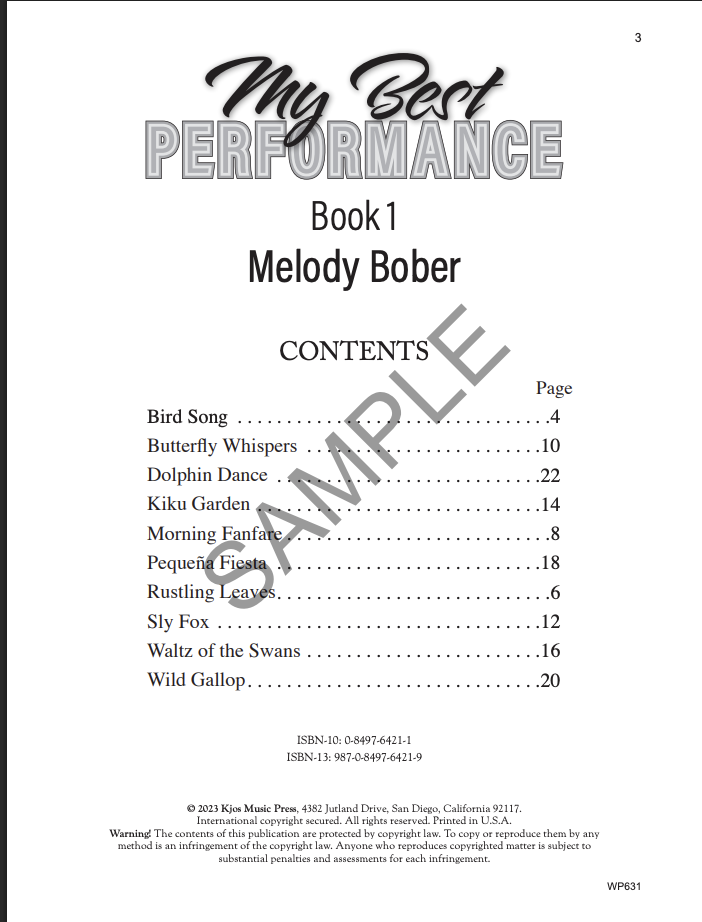 Every piano student strives to give their best performance, whether at a lesson, a recital, or in front of their family. It helps to have diverse music that motivates practice and is enjoyable for everyone to hear. My Best Performance: Piano Solos, Book 1 engages students and challenges them to become expressive musicians and confident performers. Duet accompaniments are included to enhance the sense of style and mood of each piece while providing collaborative adventures at the keyboard.
