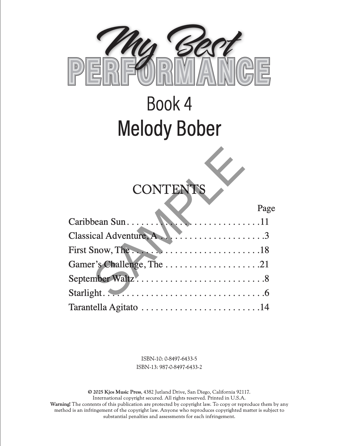 give their best performance! It is always fun to have new music that motivates practice and brings enjoyment to everyone: students, teachers and audiences alike. My Best Performance Book 4 will engage mid-intermediate piano students and challenge them to become expressive musicians and confident performers. This book features pieces with Romantic, Latin and Classical flair, as well as a waltz and tarantella giving students the opportunity to play a variety of styles. They will also explore more