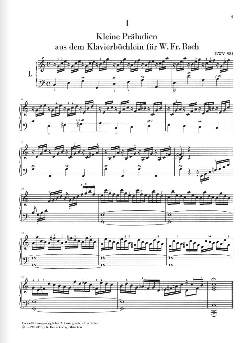 Little Prelude from the "Pianobook" for W. F. Bach BWV 924