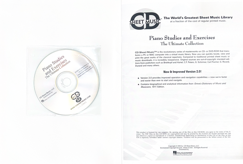Piano Studies and Exercises includes 50 complete books by Hanon, Czerny, Burgmuller, Gurlett, Pischna, and others. 2800+ pages.