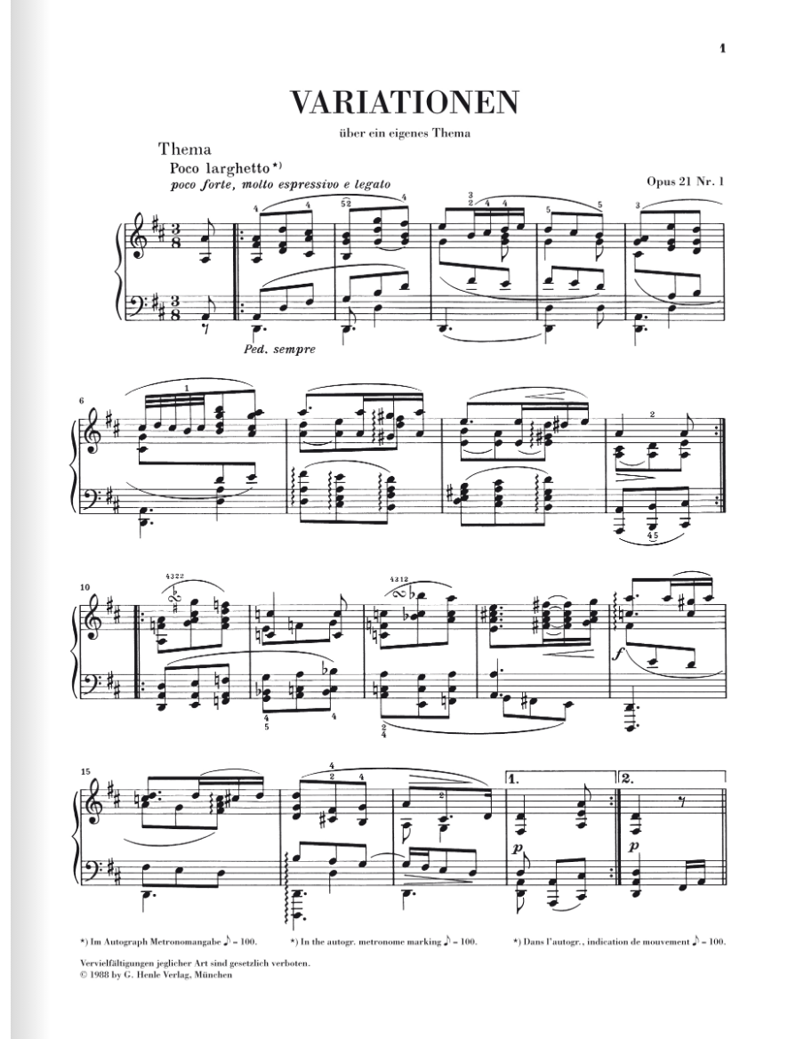 J. Brahms: Variations op. 21 no. 1 and no. 2