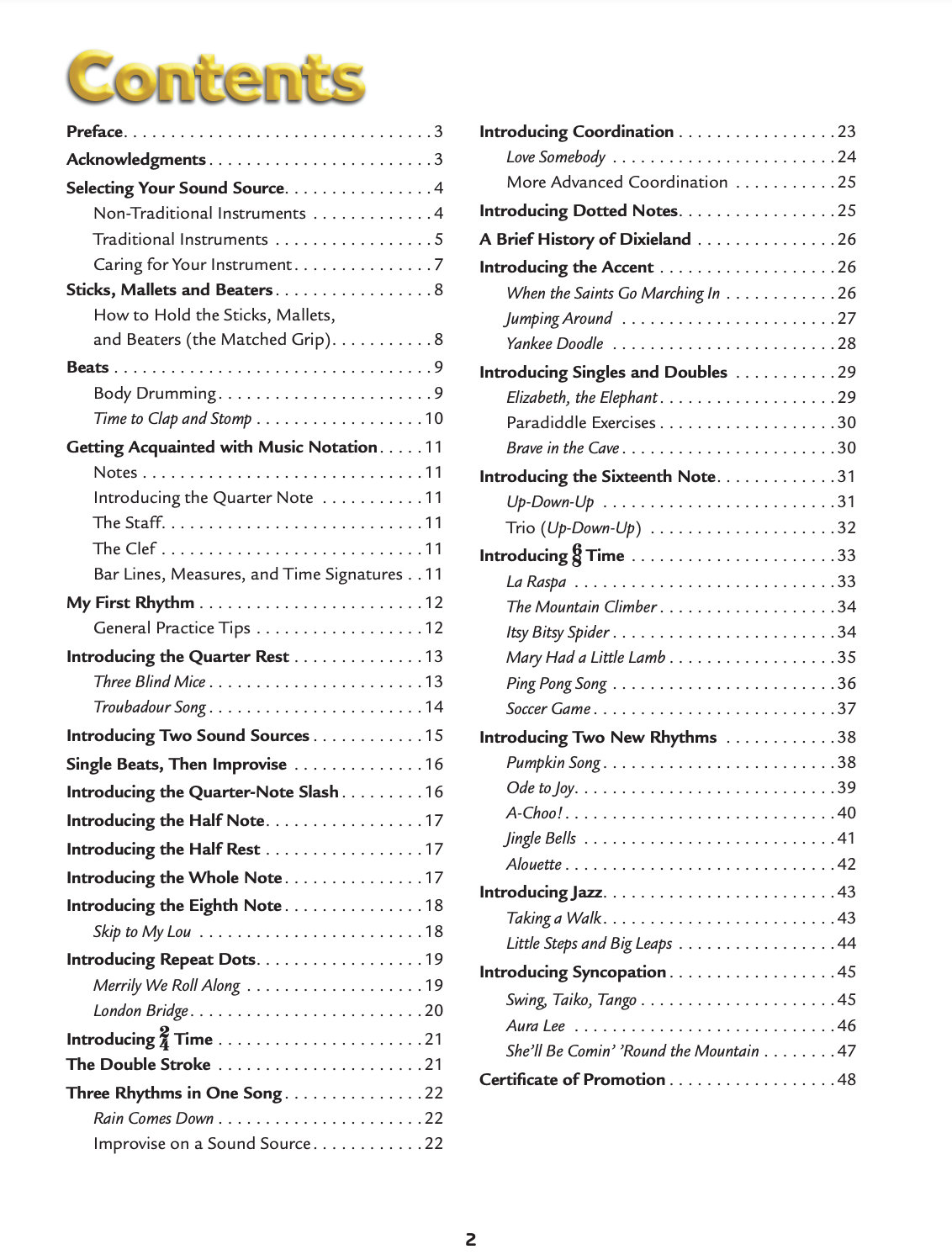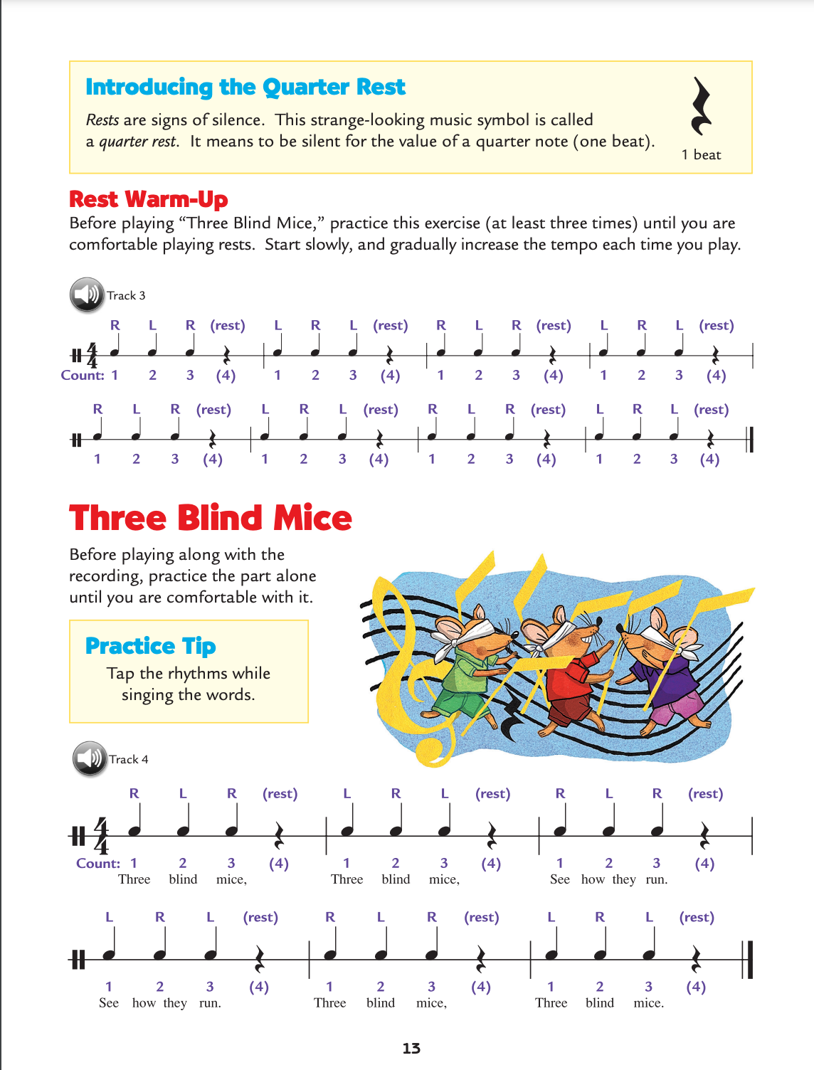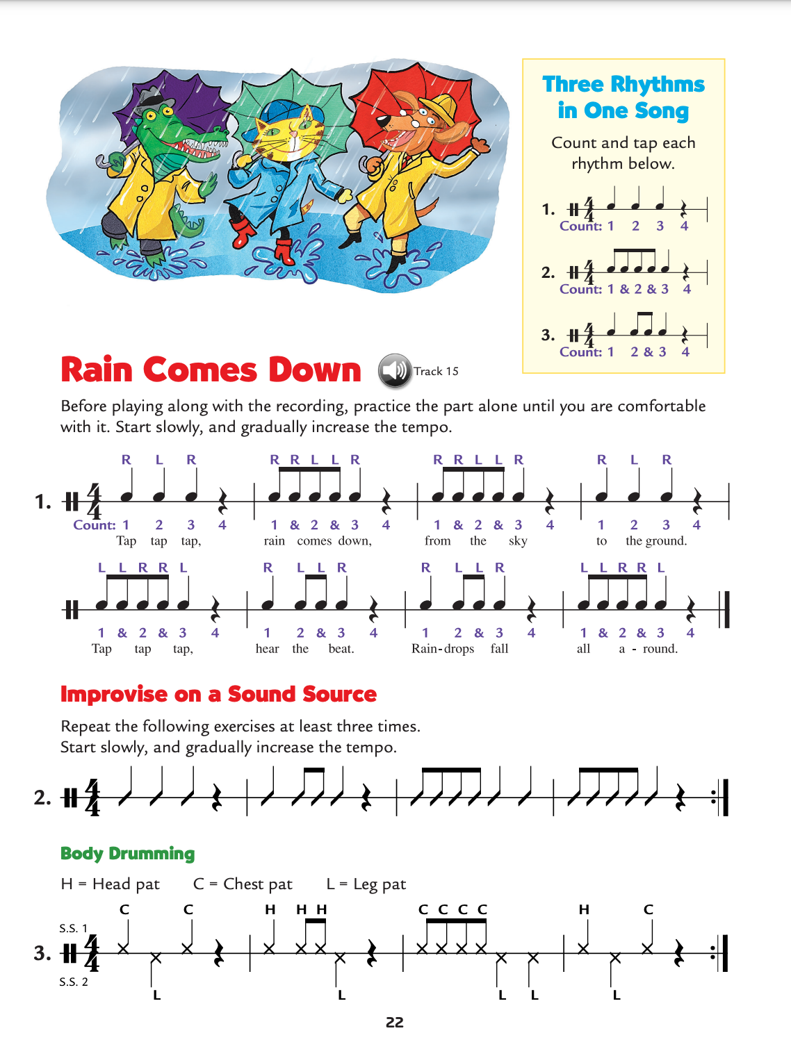 Three irresistible drum experts---a clever, classical dog, one cool cat, and a friendly alligator---keep students' attention focused by pointing out what's important on each page and help make learning music fun! This full-color book is specifically designed with attention-grabbing illustrations for use with kids at the elementary level. 48 pages.