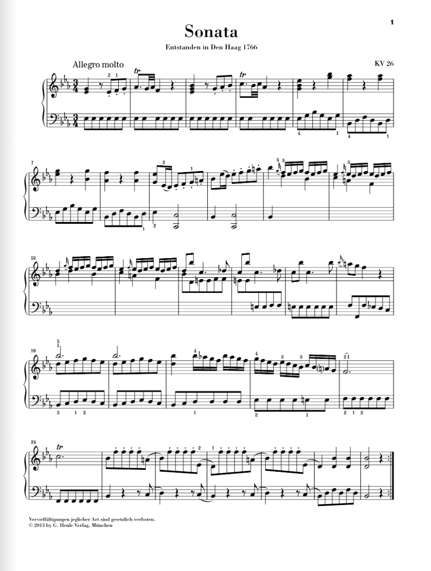 Piano Sonata (Wunderkind) E flat major K. 26