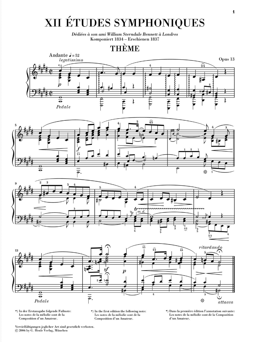 R. Schumann: Symphonic Etudes op. 13, Versions 1837 and 1852
