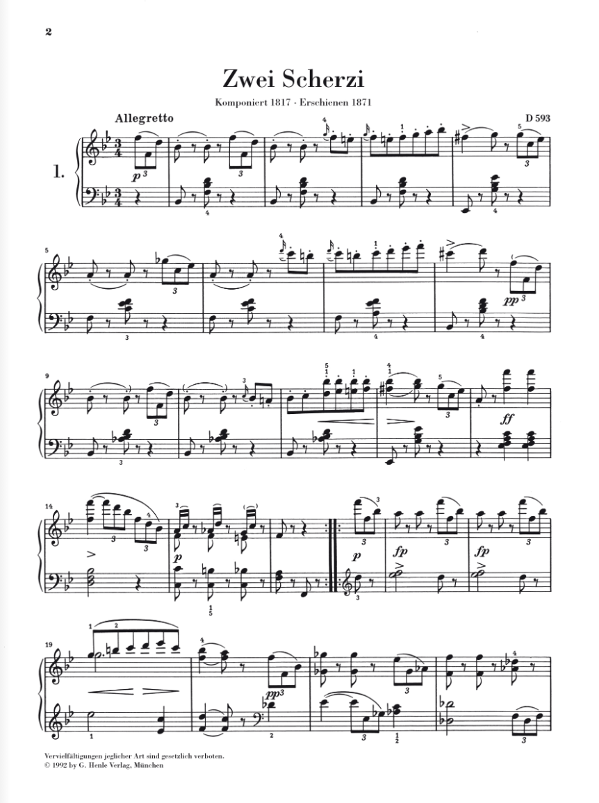 F. Schubert: 2 Scherzi B flat major and D flat major D 593