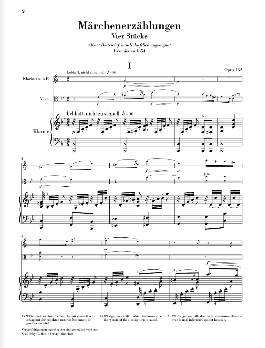 R. Schumann: Fairy Tales op. 132 for Clarinet in B flat (Violin), Viola and Piano